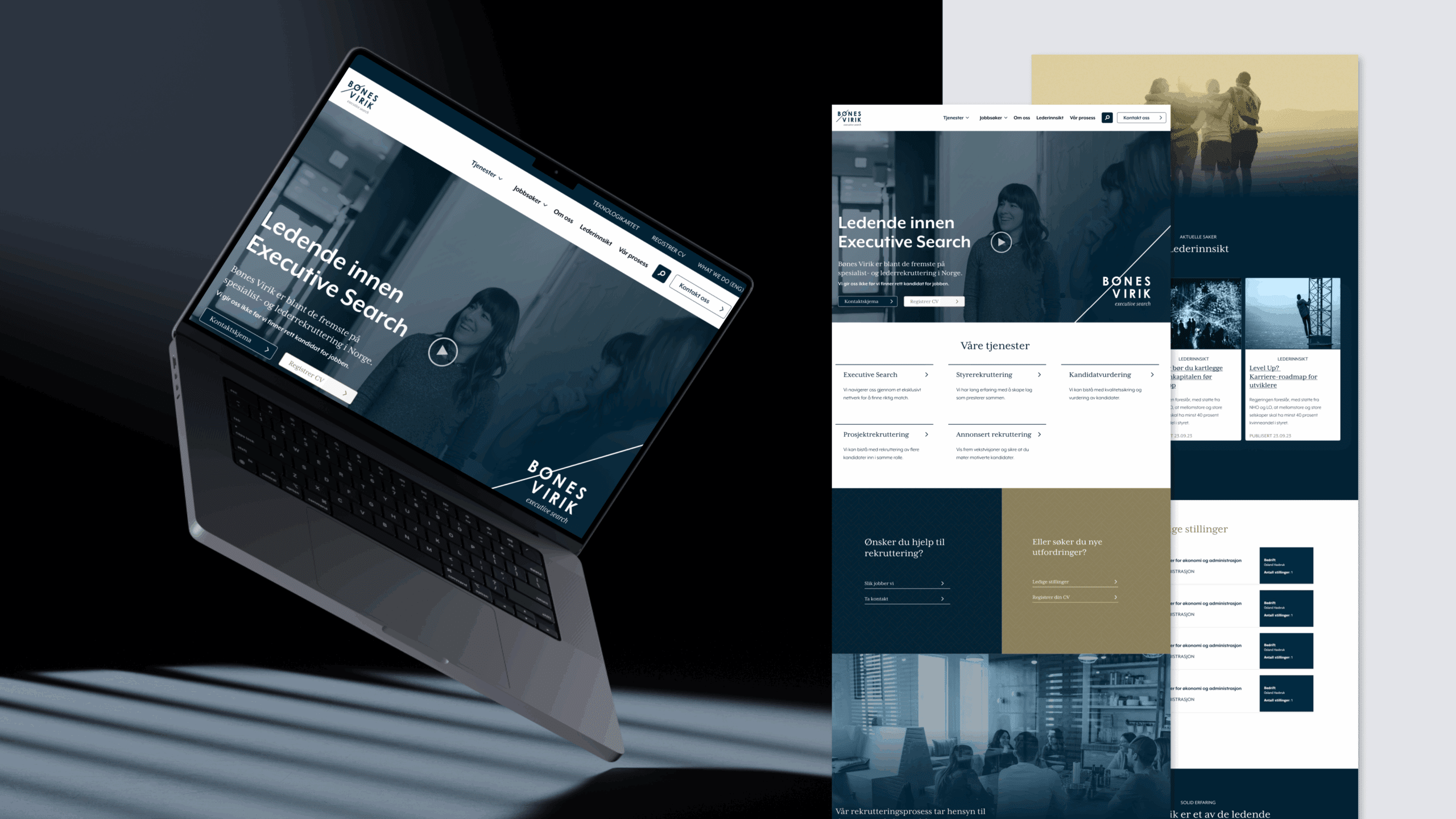 Bønes Virik er et av de fremste Executive Search-selskapene i Norge. Som følge av et omfattende strategiarbeid ønsket de å tydeliggjøre både verdier og posisjon gjennom en ny visuell identitet. I kjølvannet av den nye identiteten, har vi blant annet også utviklet annonsesystem og nettsider for dem.